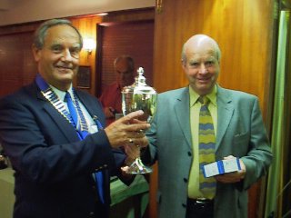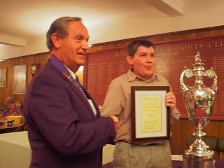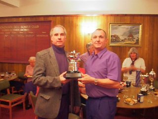 At the annual Dell prizegiving last evening, the club presented John Ottaawy with Honary Life membership to the Club. This is in recognition of his contribution to bowls at Club, County and National level over many years. A high point for John has been the winning of the EBA National Singles Championship at Worthing during August for the third time. A truely remarkable feat.